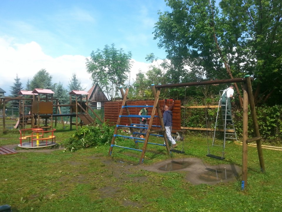 W ramach realizowanej operacji zrealizowano następujące prace: wykorytowano wraz z wykonaniem podbudowy, ustawiono obrzeża betonowe, utwardzono kostką betonową o grubości 8 cm plac apelowy. Następnie dostarczono i zamontowano urządzenia do zabawy na placu zabaw. Wyrównano teren oraz zasiano trawę. Dostarczono oraz ustawiono elementy małej architektury jako elementy wykończeniowe tj. ławki, kosze na śmieci oraz stojak na rowery.